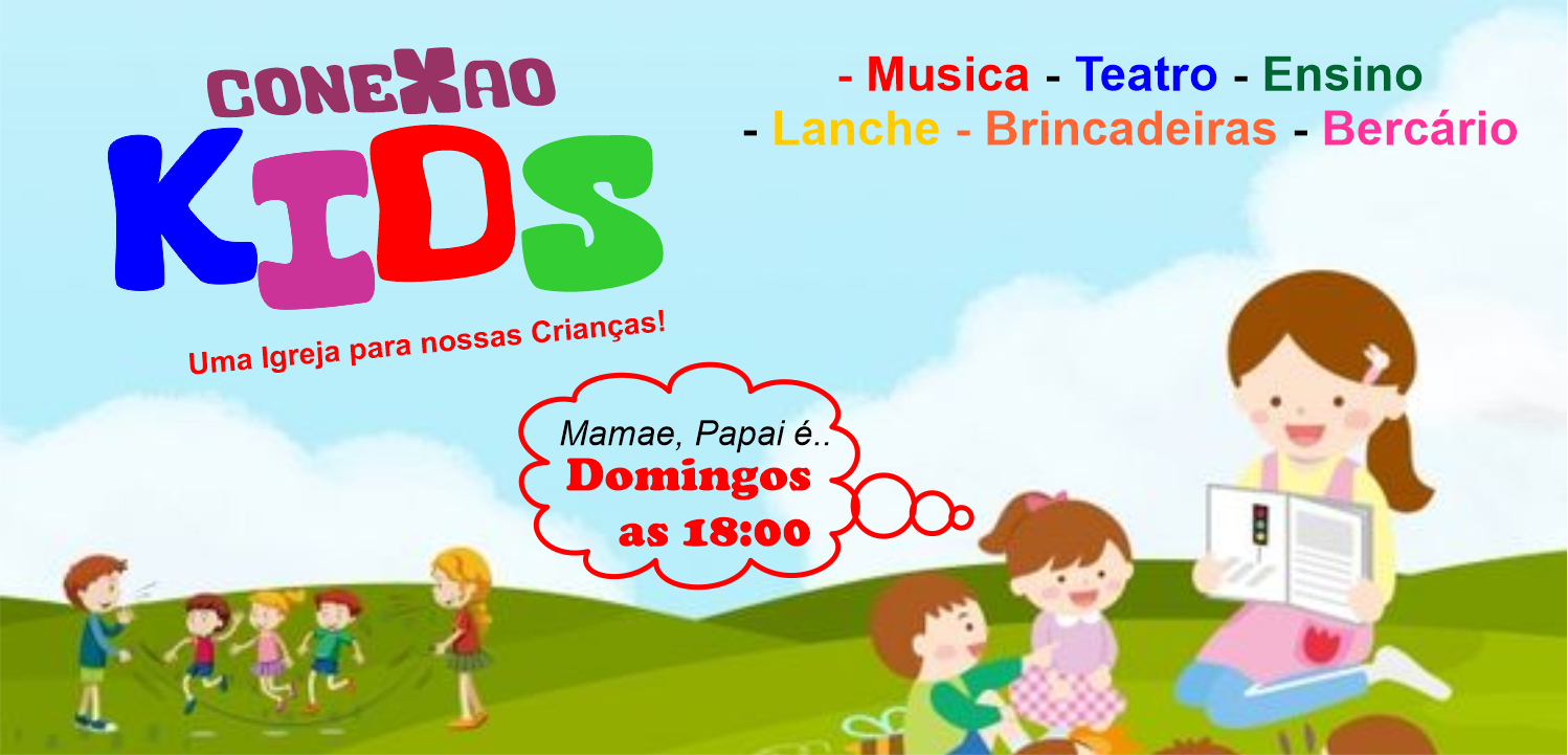 Enquanto você assiste o culto seus filhos de idade (entre 1 -7 anos de idade) ficam em um espaço reservado para idade deles onde aprenderão a palavra de Deus!